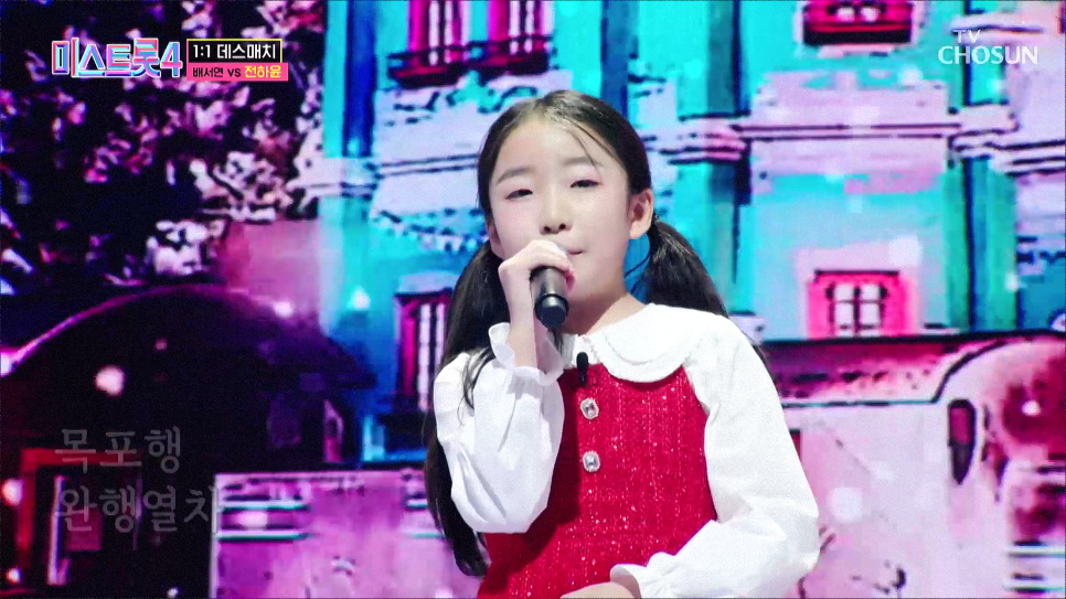 이번 회차의 첫 무대는 트롯 신동들의 정면승부로 시작됐습니다. 12살 배서연과 10살 전하윤이 맞붙은 이 대결은 “어린이 맞아?”라는 말이 절로 나올 만큼 완성도 높은 무대였죠👏. 배서연은 송가인의 ‘월하가약’을 폭풍 고음으로 소화하며 마스터들의 극찬을 받았고, 결국 11대 6으로 승리했습니다. 하지만 패한 전하윤을 따뜻하게 안아주는 배서연의 모습은 또 하나의 감동 포인트였어요🥹.