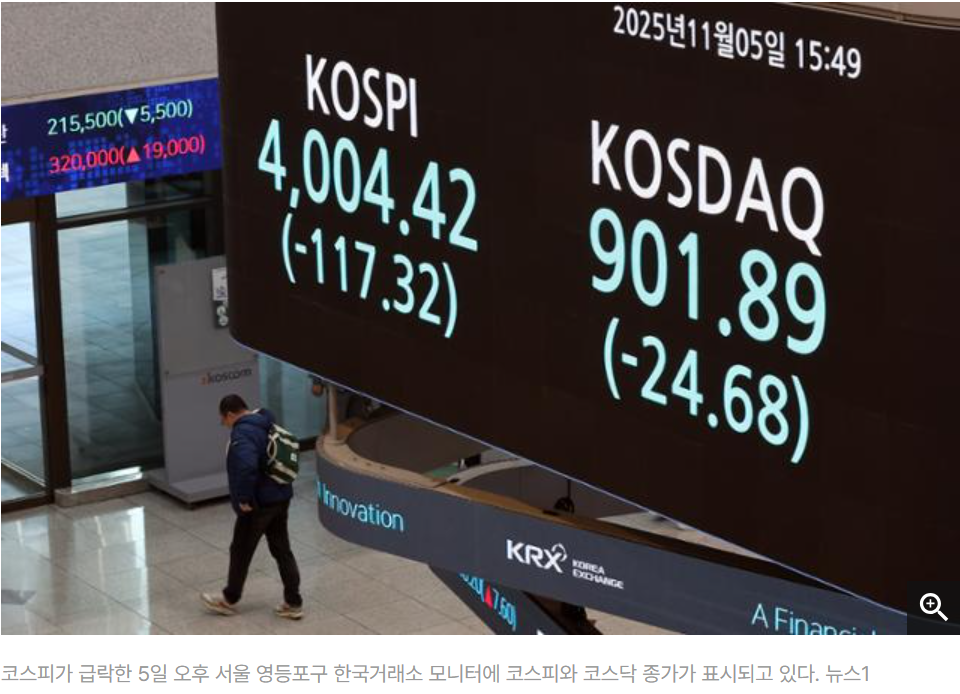 AI 대표주 팔란티어는 8% 가까이 폭락했고, 엔비디아는 단 하루 만에 시가총액이 5조 달러 → 4.8조 달러로 급감했습니다.