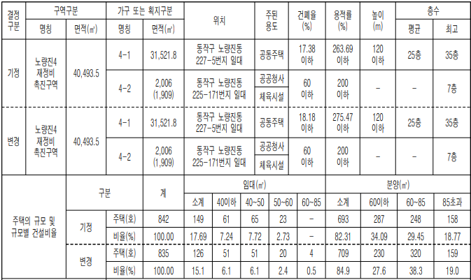이 단지는 촉진계획 변경을 통해 대형 평형을 늘리고 임대세대를 줄이는 방향으로 조정됐습니다.