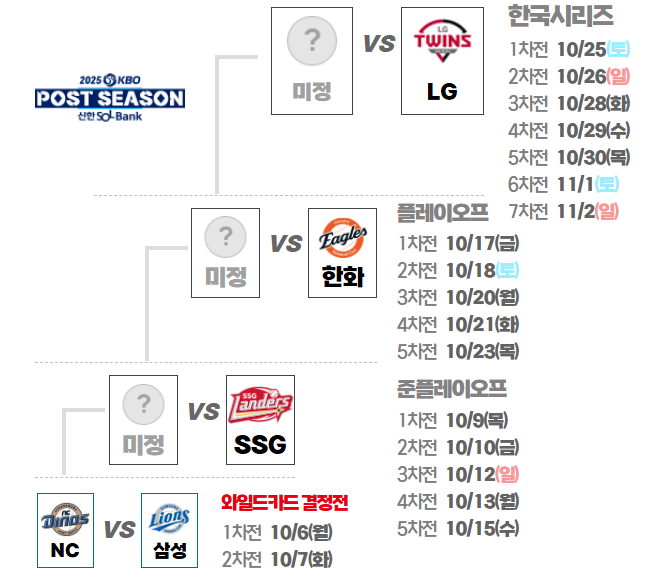 안녕하세요⚾ 야구팬 여러분! 드디어 기다리고 기다리던 가을야구 시즌이 돌아왔습니다😊 길었던 144경기의 정규시즌이 끝나고, 이제는 진짜 승부의 계절이 시작되었죠. 올해 2025 KBO 포스트시즌 대진표가 최종 확정되면서 팬들의 관심이 최고조에 달하고 있습니다. 이번 글에서는 2025 KBO 포스트시즌 일정, 주요 대진, 그리고 한국시리즈까지 이어지는 관전 포인트를 한눈에 정리해 드리겠습니다.