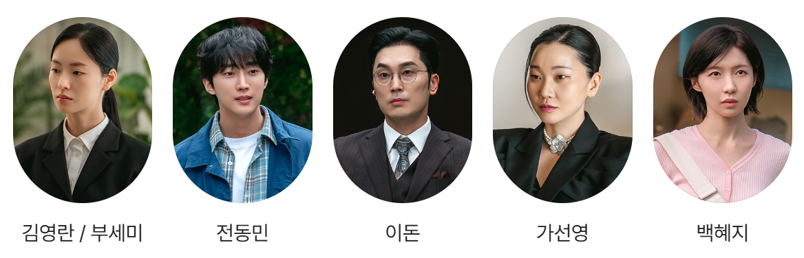 회장의 의붓딸이자 부세미의 가장 강력한 라이벌. 수단과 방법을 가리지 않는 야망가로, 극의 긴장감을 최고조로 끌어올립니다. - 백혜지 (주현영)