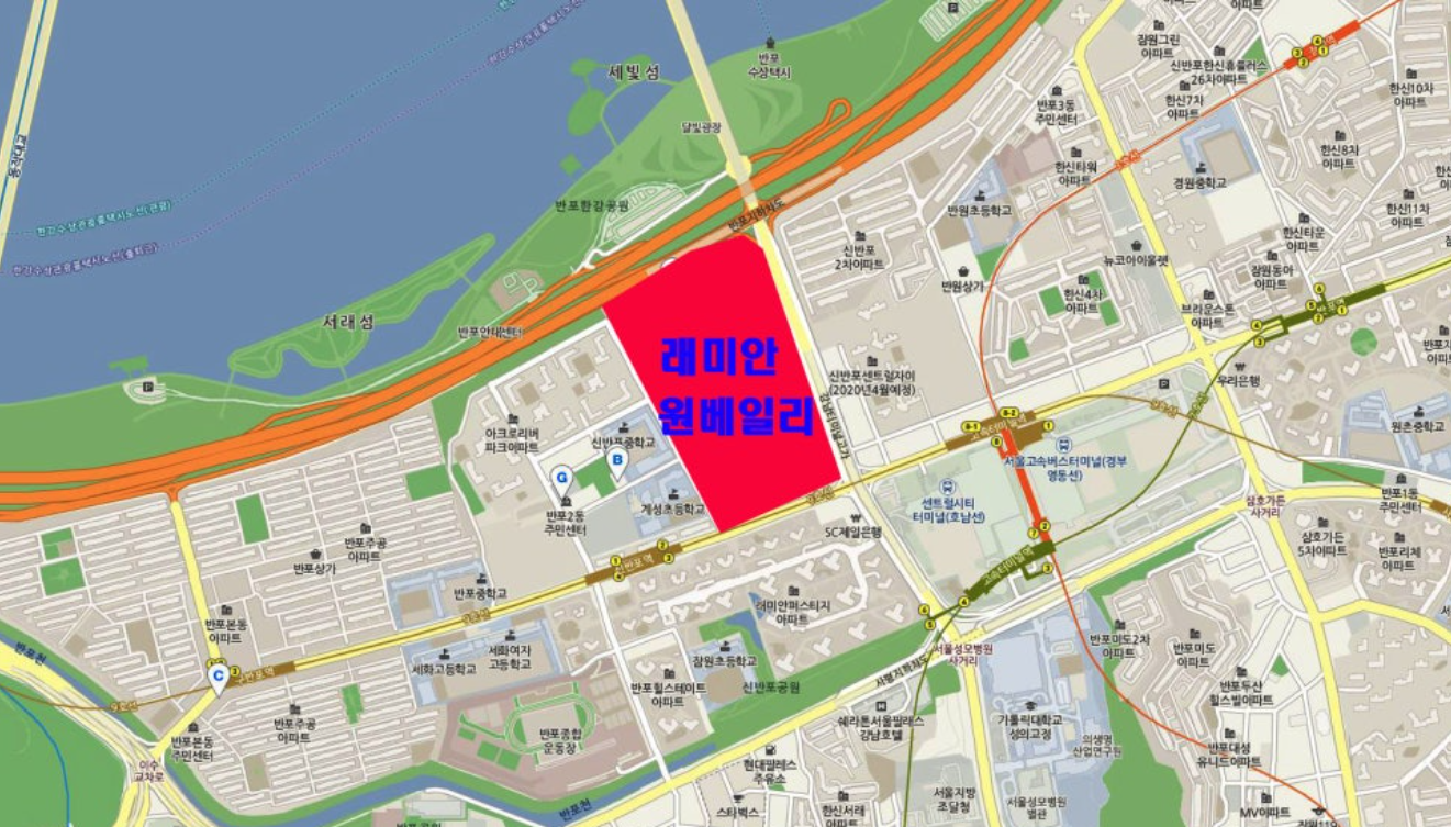 래미안 원베일리는 반포에서도 가장 뛰어난 입지를 자랑합니다.