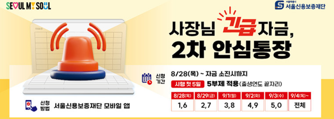 서울시 안심통장 2호는 빠르게 소진될 가능성이 높은 만큼, 조건에 해당하는 분들은 반드시 신청 첫 주 5부제를 확인하고 서둘러 신청하는 것이 좋습니다. 자영업자라면 이번 기회를 통해 든든한 금융 안전망을 확보하시길 바랍니다.