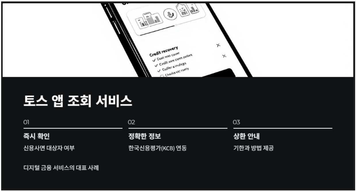 토스 앱은 사용자 편의를 위해 신용사면 대상자 조회 서비스를 제공합니다.
