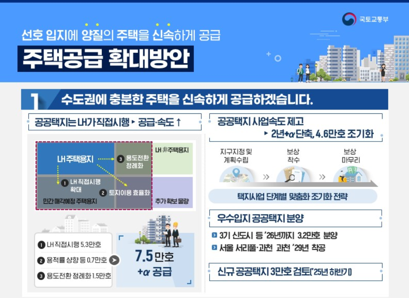 - 공공택지 활용: LH가 직접 시행해 분양가 안정화 및 속도 개선