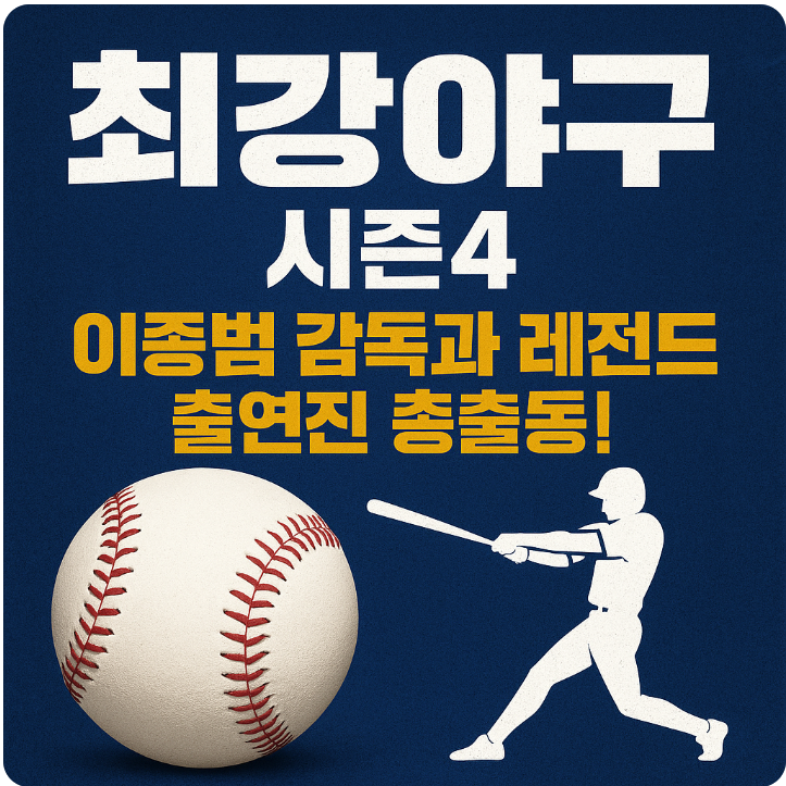 안녕하세요 😊 드디어 많은 야구 팬들이 손꼽아 기다리던 **JTBC ‘최강야구 시즌4’**가 돌아왔습니다. 매 시즌마다 웃음과 감동, 그리고 진짜 야구만의 짜릿함을 선사했던 프로그램인데요. 이번 시즌은 그 어느 때보다 큰 변화와 화려한 라인업으로 돌아와 많은 기대를 모으고 있습니다. 특히 이종범 감독의 합류와 레전드 출연진 총출동은 시즌4의 가장 큰 화제 포인트인데요. 지금부터 이번 시즌이 왜 주목받고 있는지, 꼭 알아야 할 관전 포인트를 정리해 드릴게요.