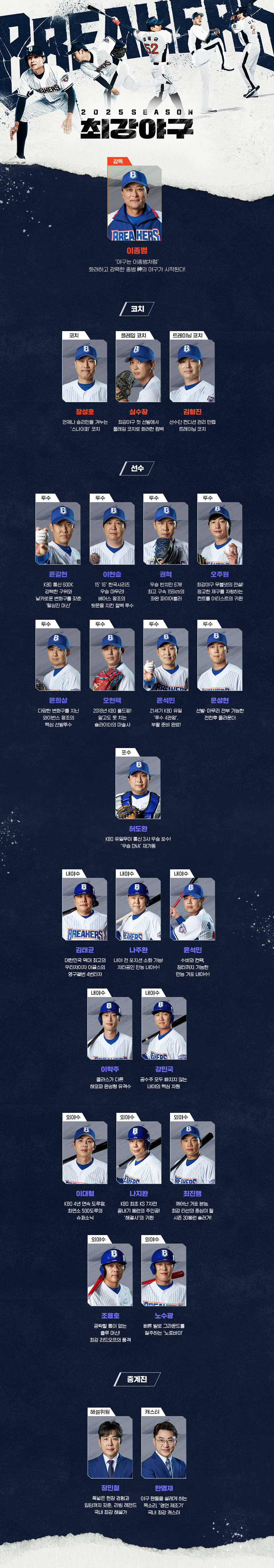이종범 감독 특유의 빠른 발과 공격적인 플레이 스타일이 이번 시즌에 어떻게 녹아들지, 또 선수들이 어떻게 반응할지가 가장 큰 관심사 중 하나입니다. 새로운 리더십 아래에서 ‘최강’이라는 타이틀을 되찾을 수 있을지 기대되네요.