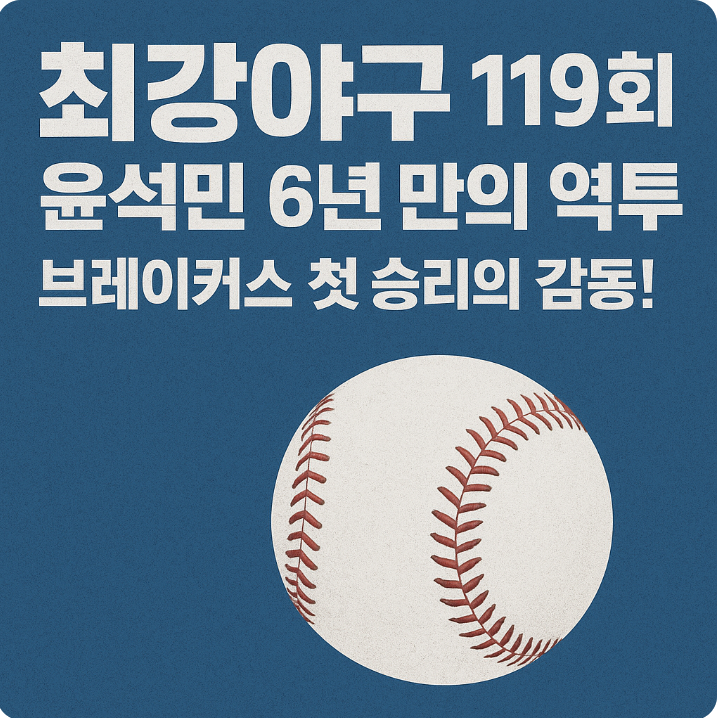 안녕하세요 ⚾️ 오늘은 많은 분들이 기다리셨던 최강야구 119회 방송 이야기를 전해드리려고 합니다. 이번 회차는 특히 윤석민 선수의 6년 만의 역투와 새로운 이름으로 돌아온 브레이커스의 첫 승리가 돋보였던 순간이었어요. 단순히 경기 결과만 담긴 것이 아니라, 선수들의 눈물과 진심, 그리고 야구에 대한 뜨거운 열정을 고스란히 보여주며 시청자들에게 큰 울림을 안겨주었습니다.