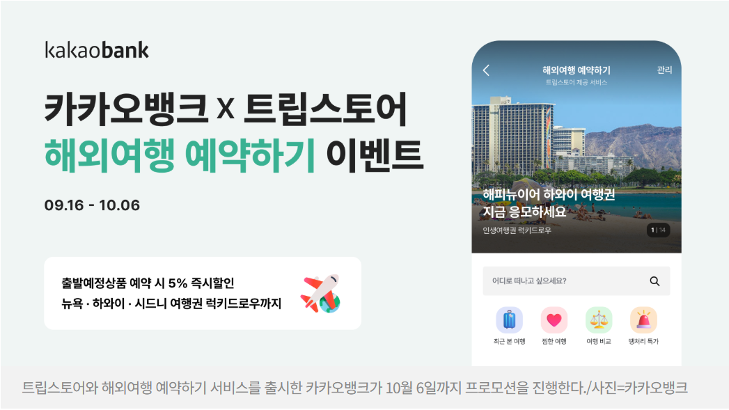 카카오뱅크 앱에서 바로 해외여행 예약 가능