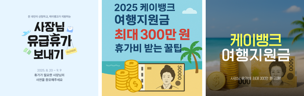 안녕하세요 여러분 😊 오늘은 소상공인 사장님들에게 정말 희소식이 될 만한 소식을 들고 왔습니다. 바로 케이뱅크 여행지원금 프로젝트인데요. 소상공인분들이 마음 편히 휴가를 다녀올 수 있도록 최대 300만 원 휴가비를 지원하는 특별한 이벤트가 열렸습니다. 장사를 하다 보면 휴가라는 단어가 너무 멀게만 느껴지는데, 이번 지원금은 그 간절한 바람을 현실로 만들어주는 제도랍니다. 지금부터 신청 방법과 혜택, 유의사항까지 하나하나 살펴보겠습니다.
