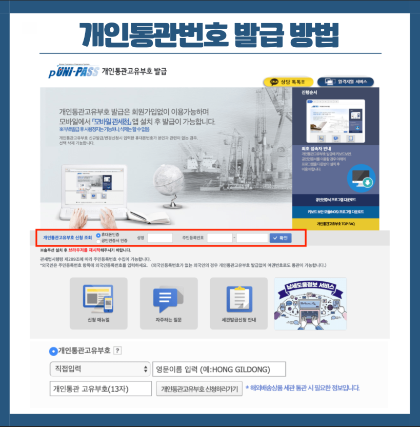 1️⃣ 포털에서 ‘관세청 유니패스 개인통관고유부호’ 검색 후 접속