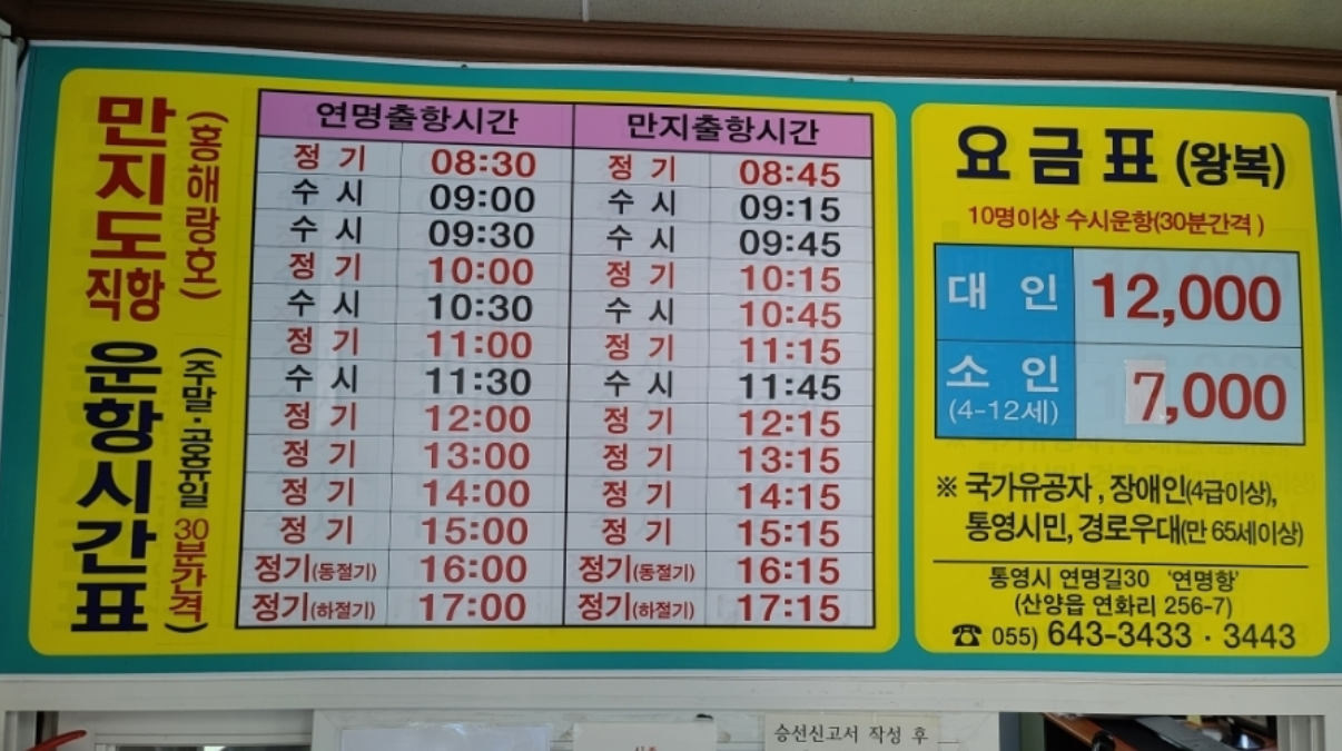 👉 주의할 점은 기상 상황에 따라 배편이 취소될 수 있다는 점이에요. 출발 전 꼭 통영 여객선 터미널 홈페이지나 전화 문의로 운항 여부를 확인하세요.