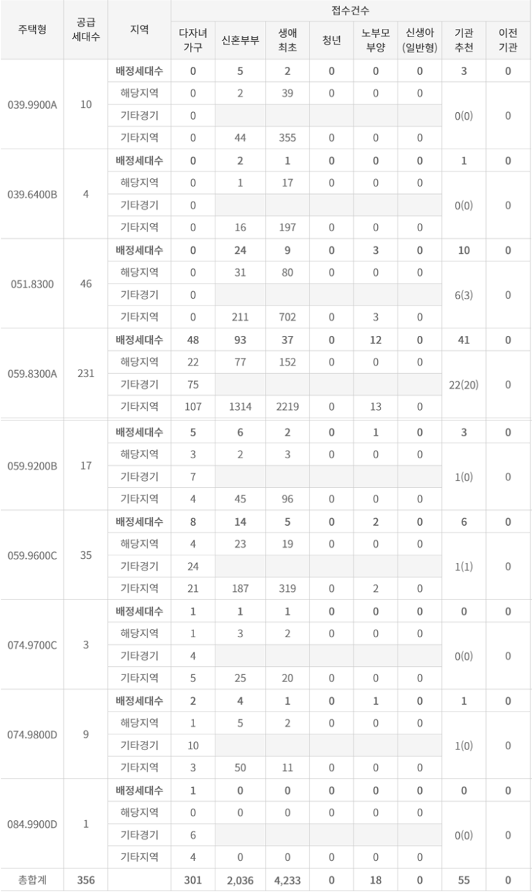 그중에서도 59A 타입 생애최초 전형이 무려 64.1:1이라는 폭발적인 경쟁률을 보였어요.