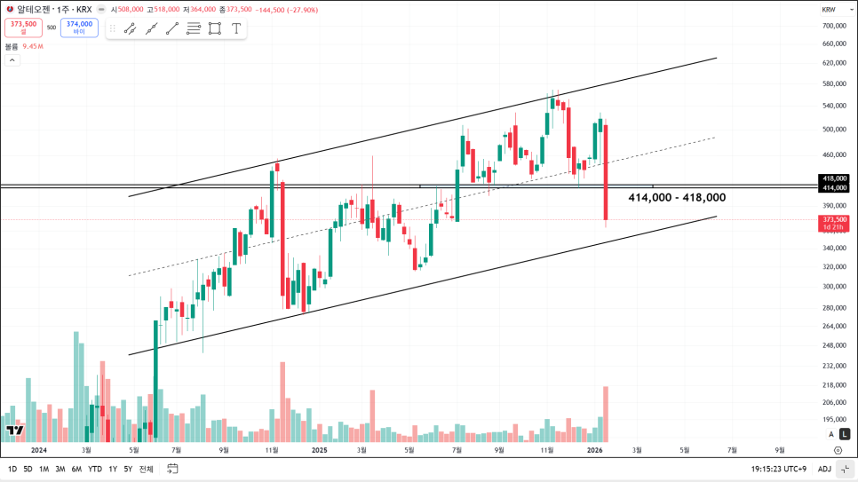 현재 414,000~418,000원 구간은 매우 중요한 의미를 지닙니다.