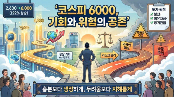 코스피 6000은 분명 단기적으로 과열 구간일 가능성도 있습니다. 한 달 만에 1,000포인트 상승은 역사적으로도 드문 사례입니다. 공매도 잔고 증가, 외국인 순매도 지속 등 경고 신호도 함께 존재합니다.
