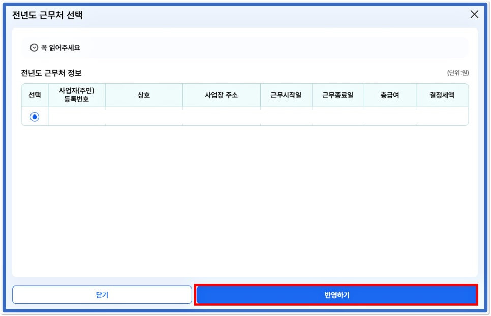 작년 정보가 자동으로 불러와지니 변동된 부분만 수정하면 끝!