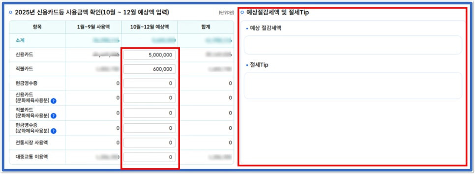 💡 이때 오른쪽의 “예상 절감세액 및 절세 TIP”을 보면