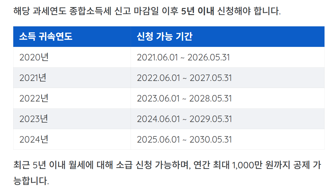 즉, 최근 5년 동안의 월세를 소급해서 환급받을 수 있으니, 놓친 해가 있다면 반드시 확인해 보세요.