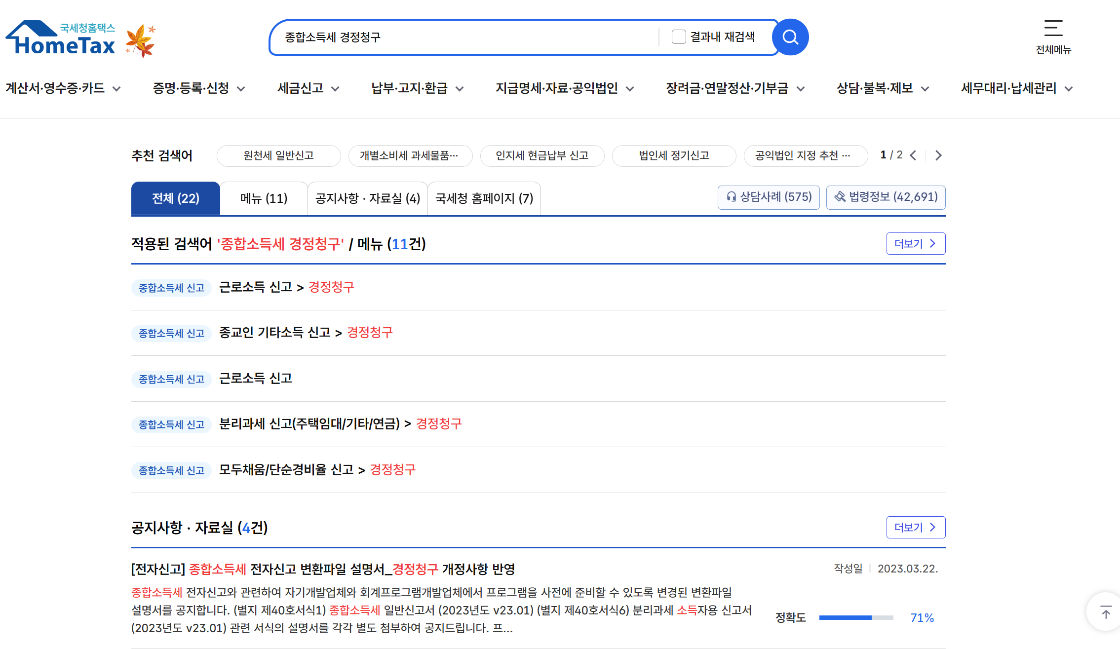 - 홈택스 로그인 → [종합소득세] → [경정청구] 선택