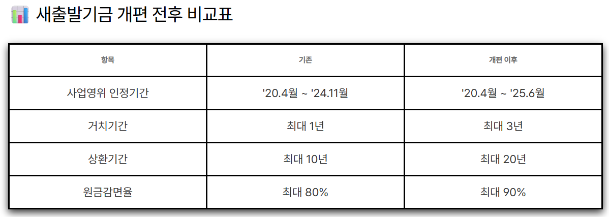 2025년 9월 22일부터 적용되는 이번 개편은 기존보다 훨씬 폭넓은 지원을 제공합니다. 가장 큰 변화는 지원 대상 확대인데요. 기존에는 사업 영위 기간이 2020년 4월부터 2024년 11월까지만 인정됐지만, 이제는 2025년 6월까지 연장됐습니다. 즉, 코로나19 여파가 뒤늦게 닥친 분들도 제도를 활용할 수 있게 된 거죠.