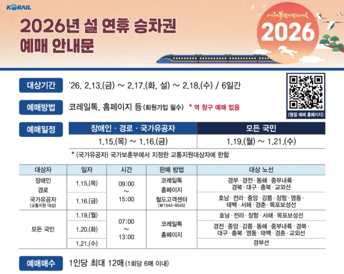 오늘은 2026년 설날 기차표 예매 일정부터 예약 방법, 취소표 잡는 요령까지 한눈에 정리해 드릴게요 ✨
