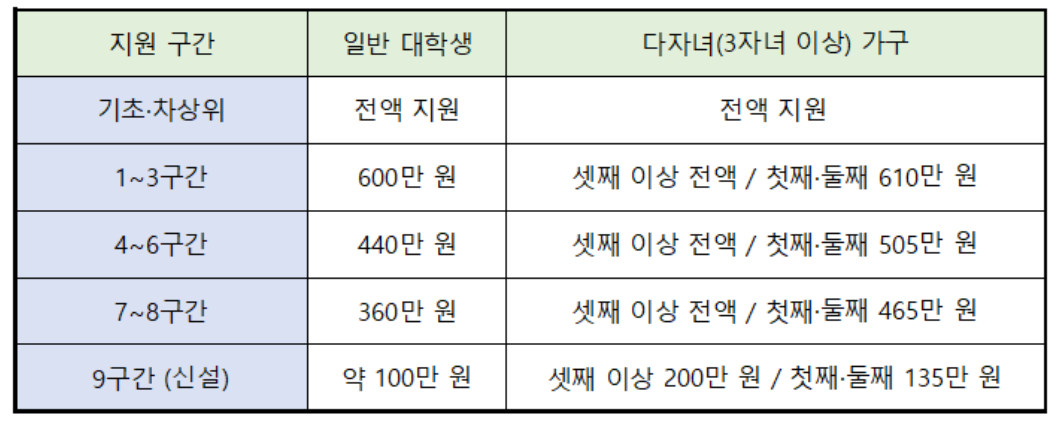 👉 학자금 지원구간이 9구간까지 확대되었다는 점이에요.