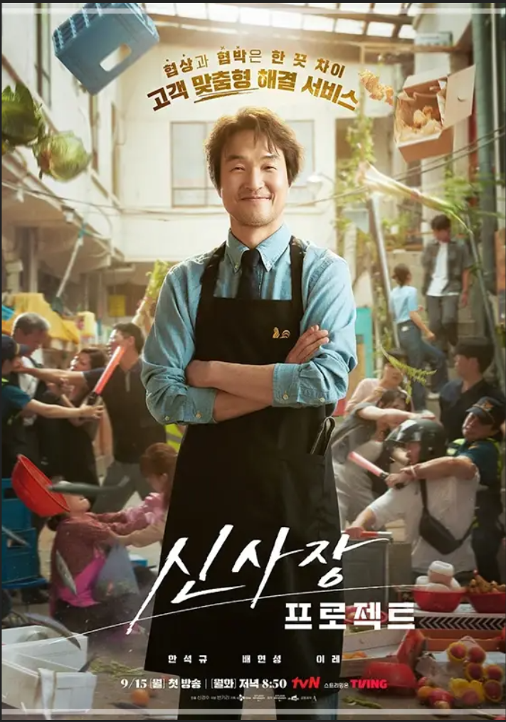 〈신사장 프로젝트〉는 tvN에서 매주 월·화 오후 8시 50분에 방송되며, 총 12부작으로 기획된 드라마입니다. 연출은 신경수 PD, 극본은 반기리 작가가 맡았으며, 스튜디오드래곤과 두프레임이 제작을 담당했습니다. 작품의 핵심은 **“말로 갈등을 해결하는 히어로”**라는 점인데요, 전직 레전드 협상가에서 현 치킨집 사장으로 살아가는 주인공 신사장이 여러 사건 속에서 갈등을 조율하는 과정을 담고 있습니다.
